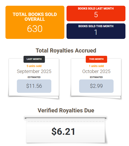 On Draft2Digital things are marginally better. As I upgrade my reach and put more books here, more people buy them outside Amazon, and the royalties are much better. That said, most of this money has already been spent months ago on promos, on subscriptions to linktree, bookfunnel, and various other things.