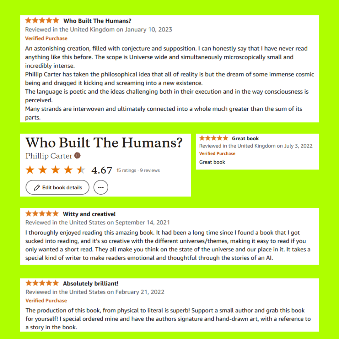 You see, the WHO BUILT THE HUMANS? series are not just short story collections, they are living multiverses. And, in WHO KILLED THE HUMANS? (the second book in the series) you will discover that those original eleven universes are now closer than they ever were before.